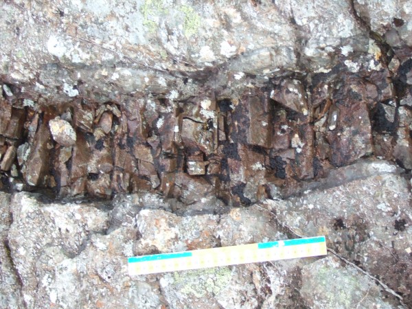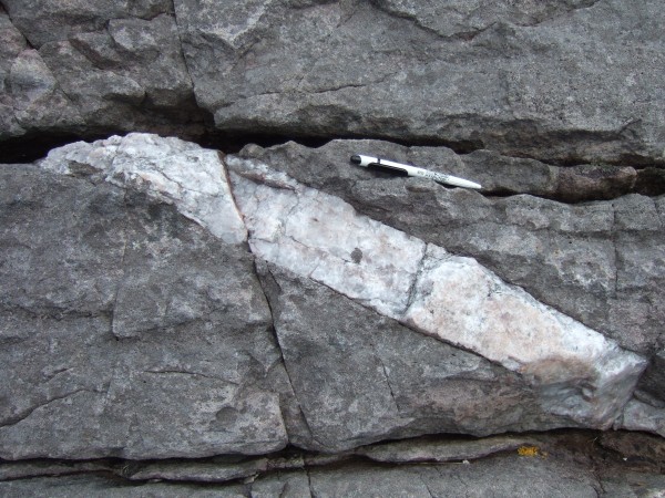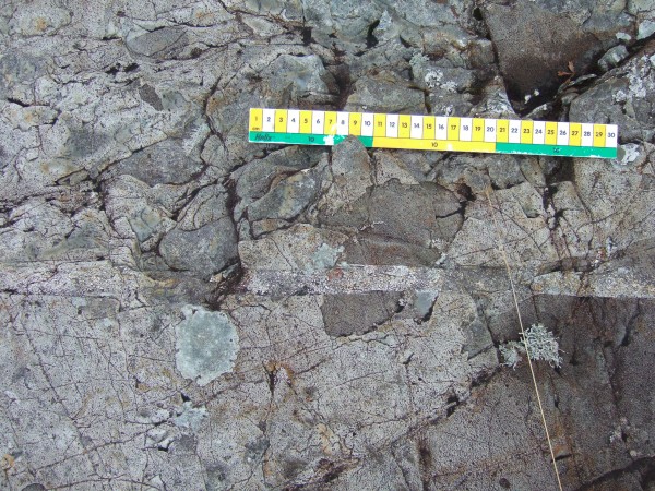 A very distinct quartz vein cuts across the psammites: