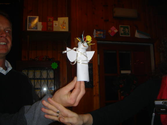 Then there was the make an angel competition. Ours was definitely the best (green one) but was burned because the wing fell off.