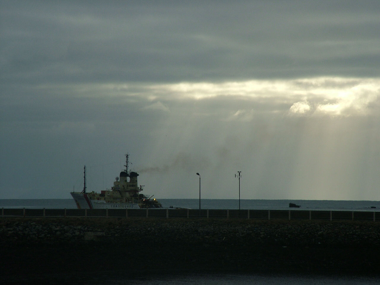 Our harbour cannot easily accommodate vessels that size, so it was agreed that the bulk carrier wait outside port where she would be met by police. A navy vessel (whose name I could not discern against this afternoon's bright sky) went out just after 2pm. An hour later, after much toing and froing off Arnish Point, she came back in, presumably with the stowaway in the brig.