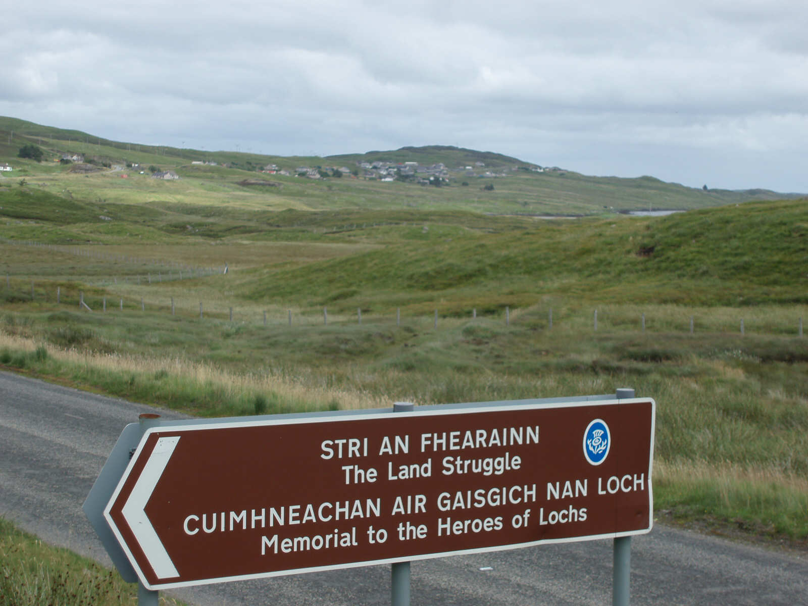 This monument was erected in memory of the people of Lochs who challenged the authority of the state in order to focus public attention on the poverty and injustice they suffered under the oppression of heartless landlords who dispossessed their forebears from over thirty villages in Park.