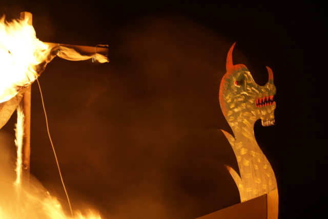 This year I took my 4 bairns with me to UHA, which they all enjoyed immensely. We joined the rest of the spectators at Norik beach in time to watch the procession of squads come doon the Floggie, torches in hand, singing out the Up Helly Aa song, and it was a fine sight to see the galley going up in flames when all the torches had been thrown in.