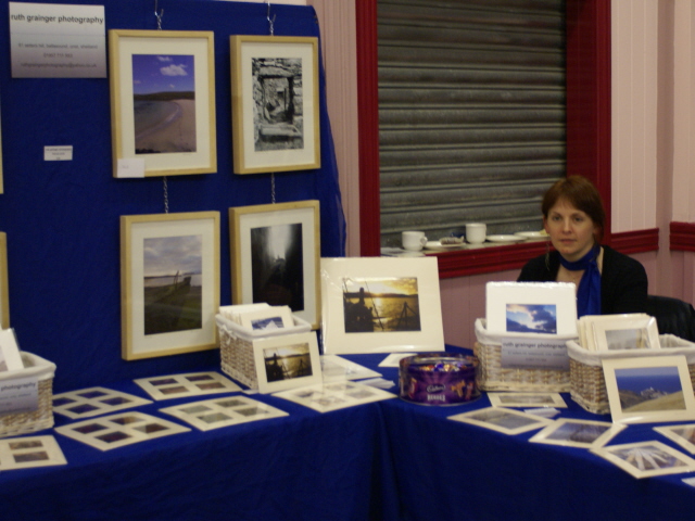 I am fiercely ignoring all those Christmas adverts online and on tv, but nevertheless this is the time of the Christmas Craft Fair season. So yesterday I spent the afternoon manning my stall at the Craft Fair here in Baltasound, ably assisted by the glamerous Muness Views and my oldest lass.