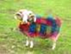 Anne (all things in moderation at IBHQ) set me thinking with her report about the pink rabbits. I was wondering whether feeding our sheep a diet of marag and mustard would produce Macleod of Lewis tartan on the hoof.