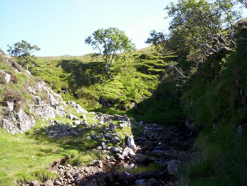 The picture shows Tob Tuath na Ceannamhora, a beautiful and seldom visited corner. I am not sure but the ruin could have been a mill.