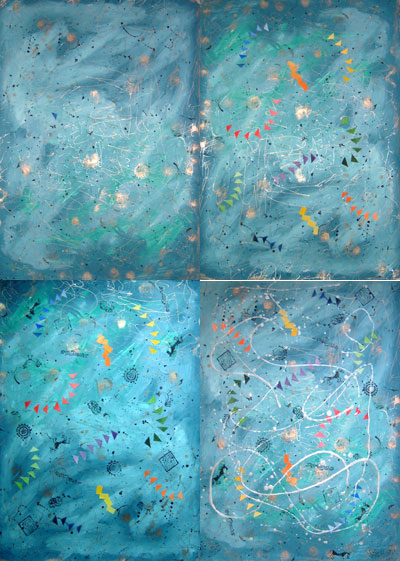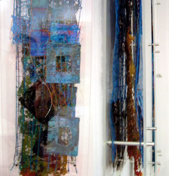 I love blues so they always capture my attention but I also was/am very interested in the way Dawn has constructed her work, it is made up of layers, lacy see through with some solid elements, floating between 2 pieces of glass/perspex/??? This is a very long narrow piece and I really like it,