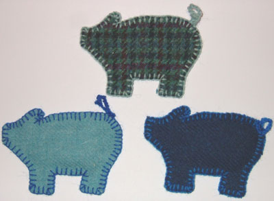 When I was at Jane’s last week I noticed blue pigs all over Jane’s studio and asked if she collected them she does and she likes blue pig and pig items for the little shop she has at the studio so during the day it came to me would she like some Harris tweed Blue Pig lavender sachets, she would so here’s the first three, just for fun,