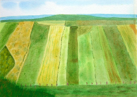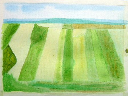 I am still pursuing bleeding acrylic paints, this time I used a tonal sketch I did a few years ago, it was done on the sand dunes at Lionacleit, Benbecula, looking north across Benbecula towards North Uist, the time of year was September so I used the greens, browns and shades between that are on the island crofts then, the painting as it was when we finished at the meeting,
