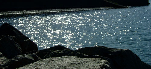 the sparkle of sunlight on water