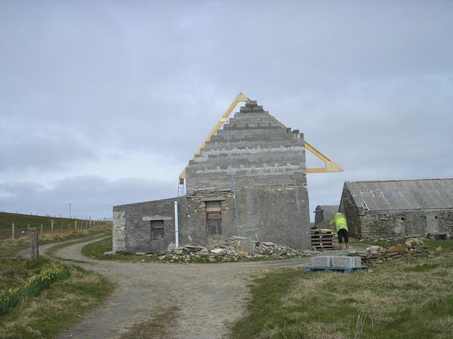 In an effort to make some sort of progress Mr B and myself have been grafting away at the Gable End, a very long painful process which has taken a lot of time and even more effort than anticipated. Here on Shapinsay we do not have the ever so speedy Fred from Lewis who can transform a hoose into a palace in the time you can say ' whos the Whitesettler' or 'Fc put that frog down'