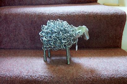 Our friends John and Sue came by the farm last night and gave me this NIFTY little metal sheep! Baaaah!!