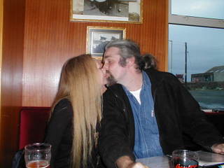 We hae a lovely local, friendly and cosy, here attached is a pic o` the landlady o` it, wi` a couple o` himself and yours truly and yours truly bein` rude and poking her tongue oot at the camera, kids, dinnae dae that, it just leads tae embarrassing photos yer parents will show a`body wha will look in later years!