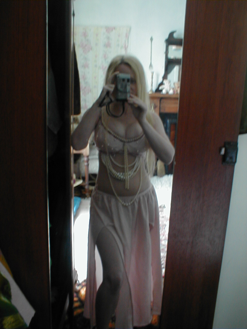 I am still making the shimmy belt for the pink silk costume, so that`s still to go around the hips. There`s also a matching veil on the go for the new green skirt and belt set. :-)
