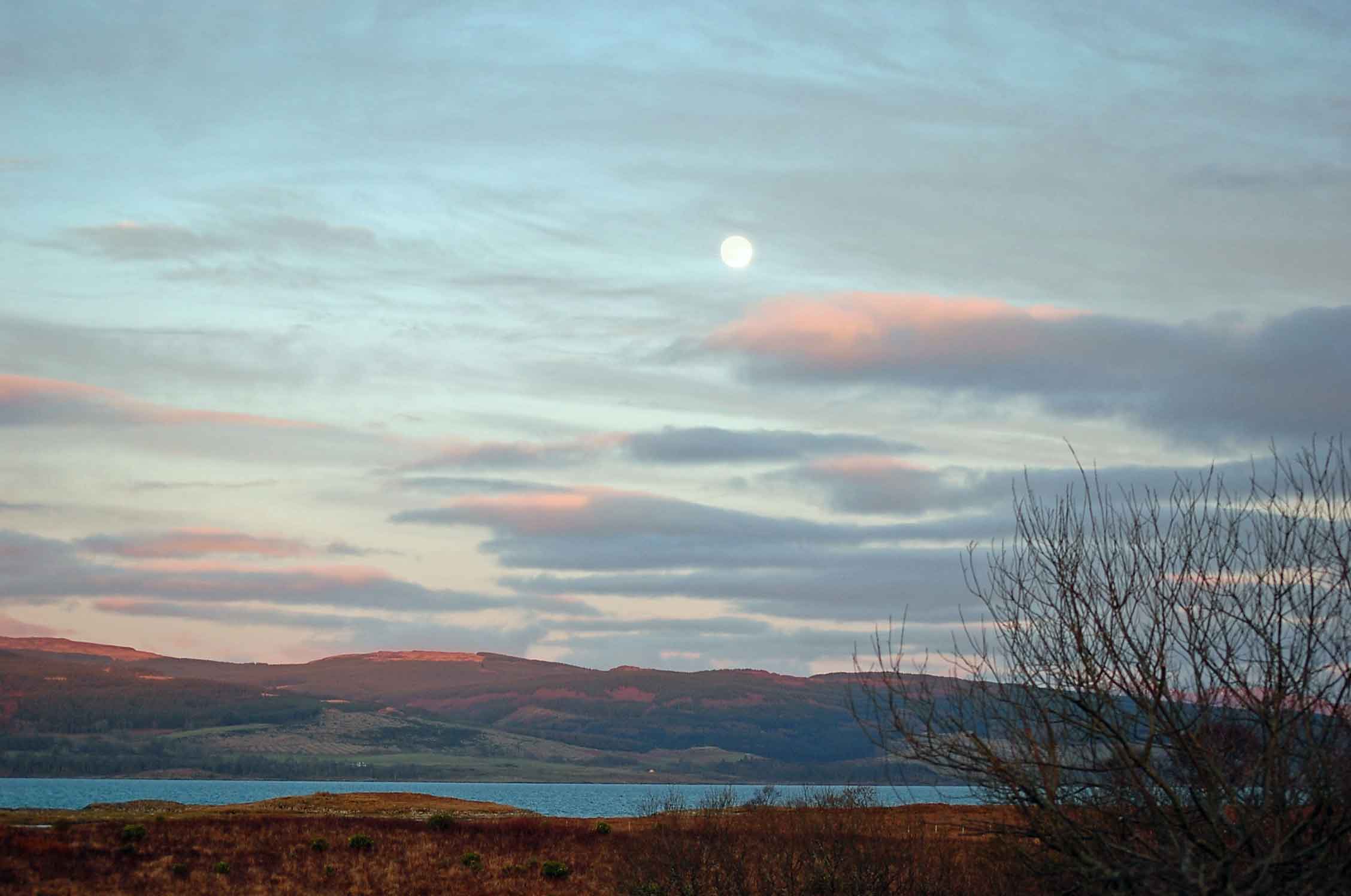 The moon over the mainland as the sun went down - the sky and tops of the mountains were a beautiful pink!