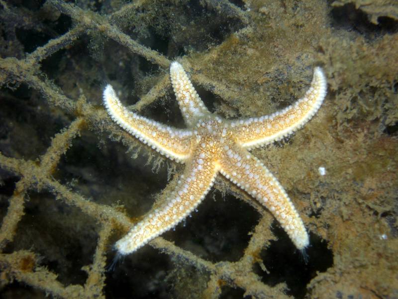 This is right on top of the hull of the Coln and is a plumose anemone with his feeding arms more or less retracted. The anemone in the centre is about the size of your fist.