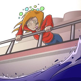 The boat rolls even more, My stomach goes one way, and I go another.