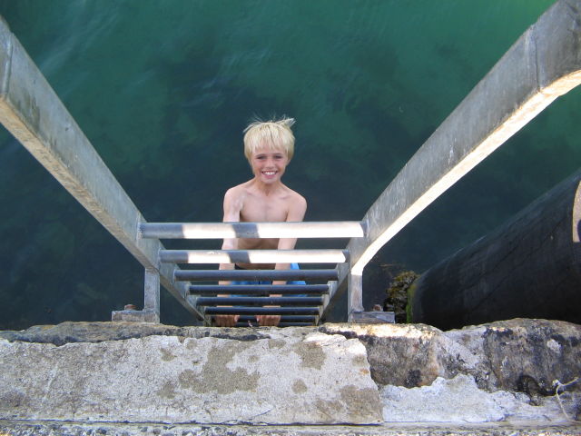 After a tour of the island, we jump into the dinghy and have tea aboard the sailing vessel. It rolls about, and I feel a bit queasy, Barney and Henry, have soup and cheese, and some Swedish hard bread - Knackebrod