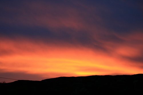 to the black clouds above