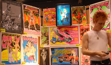 It was then I realised it was time for breakfast/lunch, so greasy street pizza was consumed rapidly (we couldn't sit down for food anywhere for some reason) on the way towards the convention centre, where the utterly overwhelming 'Flatstock' poster art exhibition was being held. I'd met Nick from the website and we quickly stopped by the Atlantic Records showcase to catch The Republic Tigers, who were quite good in an Echo & the Bunnymen way, with 3 way vocal harmonies and 3 guitar players! We stood in the shade and sank a couple of bottles of water whilst watching.