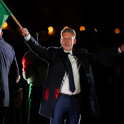 Mr Magyar told a huge crowd in Budapest that they'd taken Hungary back, after toppling the system of the long- term prime minister, Viktor Orban. Mr Magyar said Hungary would once again be a strong ally of the European Union and NATO. What next now for Hungary and relations with EU and USA. After peace talks came and went...The US military says it will begin a blockade of Iranian ports . Iran says any military vessels that approach the shipping route will be "dealt with severely", What does that mean for a global economy stressed by the war? (Photo: Peter Magyar, leader of the opposition Tisza party, waves a Hungarian flag as he celebrates; Credit: Leonhard Föger/Reuters)
