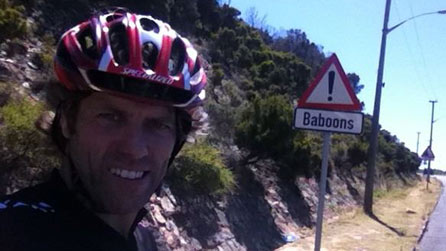 @JohnBishop100, 14 Feb: In Cape Town training in the warm. Fantastic bike ride but spoke broke and back wheel buckled- I am too big. In Hout Bay waiting for a taxi!