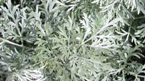 White and blue combinations are perfected by well-placed sprigs of silvery Artemisia 'Powis Castle'