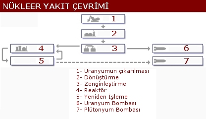 Nükleer yakıt çevriminin ana unsurları hakkında bilgi almak için aşağıdaki linklere tıklayın.