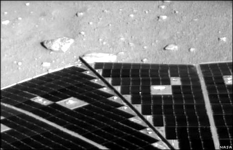 Mars'ın kuzey kutbuna yakın bir yere inen Phoenix'in gönderdiği fotoğraflarda taşlık bir bölge görülüyor.