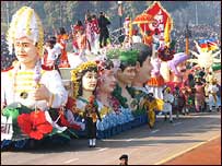 دارالحکومت دلی میں زبردست حفاظتی انتظامات کے درمیان یوم جمہوریہ کی رنگا رنگ تقریب منائی گئی اور کوئی نا خوشگوار واقعہ پیش نہیں آیا۔ روایتی پریڈ میں ملک کی دفاعی قوت کی نمائش کی گئی اور دیگر فوجی پریڈ کے موقع پر صدر عبدالکلام اور وزیراعظم من موہن سنگھ کے علاوہ سعودی عرب کے فرماں روا شاہ عبداللہ بن عبدالعزیز السعود مہمان خصوصی کی حیثیت سے موجود تھے۔ فوجی دستوں کی پریڈ کے بعد ملک کی ریاستوں سے مختلف طرح کے ثقافتی پروگرام پیش کیے۔ | اسی بارے میں بھارت:یوم جمہوریہ کی تقریبات26 January, 2005 | انڈیا آسام: یومِ جمہوریہ سے قبل دھماکے23 January, 2006 | انڈیا | ||||||||||||||||||||||||||||||||||||||||