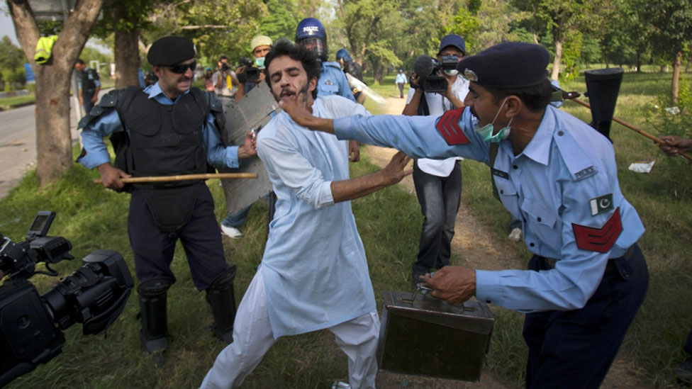 • اسلام آباد میں پولیس مظاہرین پر قابو پانے میں ابتدائی طور پر بے بس دکھائی دے رہی تھی اور ان کے پاس موثر حفاظتی سازوسامان کی بھی کمی تھی۔