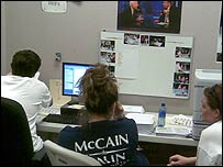 مس کم سیبووا نے شام پانچ بجے آنے کا مشورہ دیا اور کہا کہ اس وقت آپ سے بات بھی ہوگی اور تصاویر بھی بنالیجیئے گا۔ اس روز تو دیے گئے وقت پر نہ جاسکا لیکن اگلے روز جب پہنچا تو مس کِم سیبووا تو نہیں ملیں لیکن کمیلا سٹرونگن سے ملاقات ہوئی۔ دفتر میں اس وقت بھی درجن بھر لوگ کام میں مصروف تھے اور وہ ایک کونے میں لے گئیں جہاں بات کرتے ہوئے انہوں نے دعویٰ کیا کہ ریپبلیکن ایریزونا سے جیت رہے ہیں۔ انہوں نے کہا کہ ایریزونا سے ان کی جماعت کی جیت یقینی ہے اس لیے کہ صدارتی امیدوار جان مکین کی یہ آبائی ریاست ہے۔ انہوں نے اپنے دفتر میں محدود تصاویر بنانے کی اجازت دی اور میں نے چند تصاویر اتارنے کے بعد ایک کونے میں جان مکین کی بطور نیوی پائلٹ آویزاں تصویر کی تصویر اتاری۔ جان مکین ویتنام میں کئی سال بطور جنگی قیدی بھی رہے اور وہ امریکہ کے پہلے بہتر سالہ صدارتی امیدوار ہیں۔ ایک میز پر ایک خاتون جو اپنے بچے کے ہمراہ کام کر رہی تھیں ان کی تصویر بنانا چاہی تو کمیلا نے کندھے پر ہاتھ رکھا اور کہا کہ پلیز نہیں ۔چند سیکنڈ کے بعد متعلقہ خاتون نے پوچھا کہ کیا بات ہے ؟۔ جب انہیں قصہ بتایا تو انہوں نے کہا کہ پلیز بنالیں اور وہ فوٹو بناتے وقت تک مسکراتی رہیں۔ کمیلا سے پوچھا کہ آج کل میں کوئی جلسہ جلوس ہوناہے تو انہوں نے کہا کہ ہاں ایک جلوس اتوار کو نکلنا ہے لیکن اس کے وقت اور جگہ کے بارے میں آپ کو بعد میں مطلع کریں گے۔ اتوار کی صبح گیارہ بجے ان کا فون آیا کہ ریپبلیکن کا ایک جلوس فینکس میں اٹھائیسویں سٹریٹ میں نکل چکا ہے اور آپ فوری پہنچیں۔ میں نے ٹیکسی پکڑی اور فون کے تقریبا آدھ گھنٹے کے اندر متعلقہ جگہ پہنچا تو ریپبلیکن پارٹی کے دو کارکن ملے انہوں نے کہا کہ جلوس تو ختم ہوگیا۔