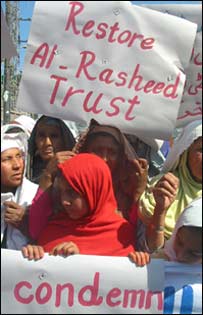 حکومت پاکستان کی جانب سے گزشتہ دنوں ایک اسلامی فلاحی تنظیم الرشید ٹرسٹ کے دفاتر کی بندش کے فیصلے سے متاثرہ افراد نے پشاور میں آج احتجاجی مظاہرہ منعقد کیا۔ مظاہرین میں بیوائیں اور بوڑھے شریک تھے جنہوں نے حکومت سے تنظیم پر سے پابندی اٹھانے کا مطالبہ کیا۔ حکومت نے گزشتہ دنوں اقوام متحدہ کی ایک قرار داد کا سہارا لیتے ہوئے الرشید ٹرسٹ کے ملک بھر میں دفاتر بند کر دیے تھے۔ اس فیصلے سے تنظیم کا کہنا تھا اس کی فلاحی سرگرمیاں بھی متاثر ہوئی ہیں۔ پشاور پریس کلب کے سامنے اس تنظیم سے ملنے والی امداد سے محروم ہونے والی بیواؤں، یتم بچوں اور بےسہارا بوڑھے افراد نے ایک احتجاجی مظاہرہ منعقد کیا۔ مظاہرین میں اکثریت ستر اسی کی عمر کے بڑے بوڑھے تھے۔ ان میں معزور افراد بھی شامل تھے۔ غریب طبقے سے تعلق رکھنے والے مظاہرین نے پلے کارڈز اور بینرز اٹھا رکھے تھے۔ انہوں نے سرکاری فیصلے کے خلاف نعرہ بازی بھی کی۔ الرشید ٹرسٹ پر الزام ہے کہ اس کے ذریعے دہشت گردوں کو رقومات مہیا کرائی جاتی تھیں۔ امریکہ پر سن دو ہزار ایک میں حملوں کے بعد صدر بش نے ایسی تنظیموں اور افراد کی فہرست جاری کی تھی جنہیں امریکہ نے غیرقانونی قرار دیا۔ اس فہرست میں الرشید ٹرسٹ کا نام بھی شامل تھا۔ پاکستان نے تاہم دفاتر کی بندش کا فیصلہ گزشتہ دنوں کیا۔ |