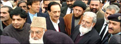 پاکستان کی تمام اپوزیشن جماعتوں نے جنرل پرویز مشرف کی جانب سے سپریم کورٹ کے چیف جسٹس افتخار محمد چودھری کو ’معطل‘ کیے جانے کے اقدام کو غیر آئینی قرار دیتے ہوئے ملک گیر احتجاجی تحریک چلانے کا اعلان کیا ہے۔ پیر کے روز اسلام آباد میں متحدہ مجلس عمل کے سربراہ قاضی حسین احمد کی رہائش گاء پر ہونے والے اجلاس کے بعد اپوزیشن جماعتوں کے رہنماؤں نے ایک مشترکہ پریس کانفرنس سے خطاب کیا۔ پریس کانفرنس کے بعد تمام سیاسی رہنماء ’معطل‘ چیف جسٹس چودھری افتخار سے ملنے ان کی رہائش گاہ کی طرف روانہ ہوئے جہاں پر پولیس نے انہیں روکا اور آگے جانے کی اجازت نہیں دی۔ سیاسی رہنماؤں نے زبردستی جانے کی کوشش کی تو پولیس نے انہیں پیچھے دھکیلا اور یہ سلسلہ تقریباً پنتالیس منٹ تک جاری رہا۔ جماعت اسلامی کے امیر قاضی حسین احمد کی طرف سے بلائی جانے والی اس کانفرنس میں پاکستان پیپلز پارٹی، پاکستان مسلم لیگ (ن)، عوامی نیشنل پارٹی، جمعیت علماء اسلام ، پشتونخواء ملی عوامی پارٹی اور تحریک انصاف کے علاوہ وکلاء تنظیموں کے نمائندوں نے شرکت کی۔ اجلاس کے فیصلے متحدہ مجلس عمل کے ڈپٹی سکیرٹری جنرل لیاقت بلوچ نے پڑھ کر سنائے۔انہوں نے کہا کہ اجلاس میں اس بات کی مذمت کی گئی کہ جنرل مشرف کا اقدام عدلیہ پر براہِ راست حملہ ہے اور وہ آئینی اداروں کے لیے ایک خطرہ بن چکے ہیں۔