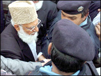 کانفرنس میں ایک سٹیئرنگ کمیٹی کا قیام بھی عمل میں لایا گیا ہے تاکہ وکلاء تنظیموں سے مل کر احتجاج کو مزید مؤثر بنایا جاسکے۔ کمیٹی سعد رفیق، حاجی عدیل، غفور حیدری، لیاقت بلوچ، نیئر بخاری اور حامدخان پر مشتمل ہے۔ قاضی حسین احمد نے کہا کہ ’معطل‘ چیف جسٹس کو کیمپ آفس بلانے سے یہ بات ثابت ہوتی ہے کہ یہ عدلیہ کی نہیں بلکہ طاقت کی بالادستی ہے۔، سیاسی رہنماؤں نے گومشرف گو، چیف جسٹس کو رہا کرو، قوم کا چیف جسٹس افتخار چودھری اور جعلی سپریم جوڈیشل کونسل مردہ باد کے نعرے لگائے۔ پاکستان تحریک انصاف کے رہنماء عمران خان نے بی بی سی کو بتایا کہ سیاسی رہنماؤں کو چیف جسٹس کی رہائش گاہ تک جانے سے روکنا اس بات کا ثبوت ہے کہ حکومت جھوٹ بول رہی ہے کہ وہ نظر بند نہیں ہیں۔ | اسی بارے میں جماعت کی کل جماعتی کانفرنس12 March, 2007 | پاکستان ’جھکنے سے انکار پر فارغ‘11 March, 2007 | پاکستان پاکستانی حکومتیں، جج اور عدلیہ11 March, 2007 | پاکستان ’جوڈیشل کونسل کی تشکیل غلط ہے‘11 March, 2007 | پاکستان ’وہ نظر بند نہیں‘ عظیم طارق 11 March, 2007 | پاکستان وکلا کا احتجاج اور بائیکاٹ12 March, 2007 | پاکستان | ||||||||||||||||||||||||||||||||||||||||