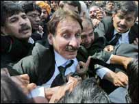 پولیس نے وکلا کو لاٹھی چارج سے پیچھے ہٹایا اور جسٹس افتخار کی گاڑی تیز رفتار میں پرائم منسٹر سیکریٹریٹ کے سامنے پہنچ گئی۔ معطل چیف جسٹس افتخار محمد چودھری آج ملزم کی صورت میں عدالت آئے اور ایک ایسے بڑے جلوس کی صورت میں واپس گئے جو جلوس پاکستان میں آج کل سیاستدانوں کو بھی مشکل سے ہی نصیب ہوتا ہے‘۔ |