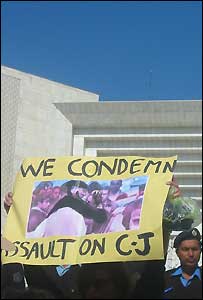 چیف جسٹس کی رہائش گاہ کی طرح ان کا دفتر بھی ان کے عقیدت مندوں، حکومت مخالفین اور سیاست دانوں کا دوسرا ٹھکانہ ہیں۔ تھوڑے تھوڑے وقفے سے وکلا، سیاستدان اور غیرسرکاری تنظیموں کے لوگ بینرز اٹھائے وہاں آتے ہیں اور عدلیہ کے حق میں دو چار نعرے لگاتے ہیں، صحافیوں کو انٹرویو دیتے ہیں اور چلے جاتے ہیں۔ ملاقاتوں اور احتجاج کا یہ سلسلہ شاید چیف جسٹس کے خلاف مقدمے کی سماعت کے ساتھ ساتھ چلتا رہے گا۔ |