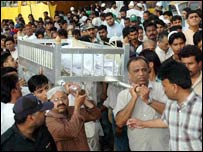 کراچی میں ہنگاموں کےخلاف اے آر ڈی اور ایم ایم اے میں شامل جماعتوں کی کال پر اندرون سندھ کے سارے ضلع ہیڈ کوارٹرز میں احتجاجی مظاہرے اور ریلیاں ہوئی ہیں۔ حیدرآباد، نواب شاہ، لاڑکانہ، قمبر شہداد کوٹ، سکھر اور جیکب آباد سمیت سارے شہروں اور تحصیل ہیڈ کوارٹروں میں احتجاجی جلوس نکالے گئے۔ پولیس حکام کے مطابق شکارپور کے جہاز چوک پر واقع ایم کیو ایم کے زونل دفتر کو نامعلوم افراد نے آگ لگا دی۔ایم کیو ایم کے مقامی رہنماؤں نے کسی کے خلاف ایف آئی آر درج نہیں کروائی۔ جیکب آباد میں پی پی پی، جی یو آئی اور ایس ٹی پی کے جلوس کے دوران مشتعل لوگوں نے شہر میں لگے ہوئے ایم کیو ایم کے جھنڈوں کو آگ لگا دی۔ ایم کیو ایم کے سربراہ الطاف حسین کے پتلے بھی نذر آتش کیئے گئے۔ سکھر اور نواب شاہ میں کراچی کے ہنگاموں کے دوران ہلاک شدگان کے لیے غائبانہ نماز جنازہ ادا کی گئی۔ سندھ کے قوم پرست رہنما رسول بخش پلیجو کی جماعت عوامی تحریک کی جانب سے ان کے ایک کارکن محمد نواز کنرانی کی کراچی میں ہلاکت کے خلاف حیدرآباد، بدین، ٹھل اور دیگر چھوٹے بڑے شہروں میں شٹر بند ہڑتال کی گئی۔ تحریک نفاذ فقہ جعفریہ پاکستان نے پیر کو پورے ملک میں کراچی کے واقعات کے بعد یوم دعا منانے کا اعلان کیا ہے۔ | اسی بارے میں کراچی کی ’جنگ‘ کس نے جیتی؟12 May, 2007 | پاکستان کراچی میں ہنگامے، چونتیس ہلاک12 May, 2007 | پاکستان چیف جسٹس کے وکلاء ’صوبہ بدر‘12 May, 2007 | پاکستان صدر کے جلسے کی تیاریاں مکمل12 May, 2007 | پاکستان پشاور: پیر سے پیہہ جام ہڑتال12 May, 2007 | پاکستان دھماکہ:سابق فراری کمانڈر زخمی12 May, 2007 | پاکستان کراچی: مزید ہلاکتیں، رینجرز تعینات13 May, 2007 | پاکستان کراچی کے خون سے اخبارات رنگے رہے13 May, 2007 | پاکستان | ||||||||||||||||||||||||||||||||||||||||