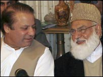 تحریک انصاف کے سربراہ عمران خان نے کہا کہ ان کی جماعت نے وکلاء اور پی سی او کے تحت برطرف کیے گئے ججوں کا ساتھ دیتے ہوئے انتخابات میں حصہ نہ لینے کا اصولی فیصلہ کیا ہے۔ ’جسٹس افتخار کی شکل میں پہلی دفعہ پاکستانی عوام کو ایسا لگا تھا کہ اب قانون کی حکمرانی ہوگی، الیکشن میں حصہ لینا ان کی پیٹھ میں چھرا گھونپنے کے مترادف ہوگا۔‘ یاد رہے کہ آل پاکستان وکلاء کنونشن نے تمام سیاسی جماعتوں سے مطالبہ کیا ہے کہ آٹھ جنوری کو ہونے والے عام انتخابات کا بائیکاٹ کریں اور وکلاء کی عدلیہ کی بحالی کی جدوجہد میں شامل ہوں۔ |