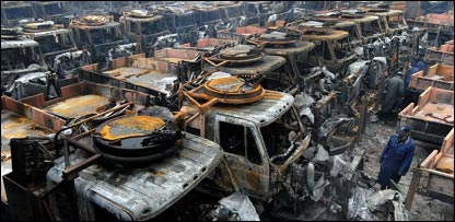 پشاور میں حکام کا کہنا ہے کہ مسلح افراد نے اتحادی افواج کو سامان لے جانے والی گاڑیوں پر ایک اور حملہ کیا ہے جس سے دو کنٹینرز کو نقصان پہنچا ہے۔ گزشتہ چار دنوں میں نیٹو افواج کو سامان لےجانے والی گاڑیوں پر یہ تیسرا حملہ ہے۔ پولیس کے مطابق یہ واقعہ جمعرات کی شام قبائلی علاقے باڑہ کے سرحد کے قریب پشاور کے علاقے رنگ روڈ پر اس وقت پیش آیا جب بعض نامعلوم مسلح افراد نے اتحادی افواج کو سامان رسد لے جانے والی گاڑیوں کے ایک اڈے بلال ٹرمینل پر دستی بم سے حملہ کردیا۔ تھانہ پیشتخرہ کے ایک اہلکار ظہور نے بی بی سی کو بتایا کہ حملے سے ایک کنٹینر میں آگ بھڑک اٹھی جس سے گاڑی مکمل طورپر تباہ ہوگئی۔ انہوں نے کہا کہ حملے میں ایک کنٹینر تباہ ہوا ہے تاہم عینی شاہدین کا کہنا ہے کہ آگ سے دو گاڑیوں کو نقصان پہنچا ہے جبکہ ٹرمینل کے ایک دیوار کو بھی نقصان پہنچا ہے۔ پولیس اہلکار کے مطابق حملے کے بعد علاقے میں سرچ آپریشن شروع کردیا گیا ہے جبکہ سکیورٹی بھی مزید سخت کردی گئی ہے۔ گزشتہ چار دنوں میں اتحادی افواج کو سامان لےجانے والی ٹرکوں اور کنٹینرز کے اڈوں پر یہ تیسرا حملہ ہے جس میں ڈھائی سو سے زائد گاڑیوں کو تباہ کیا گیا ہے۔ تاہم پولیس کی طرف سے تاحال کسی حملہ آوار کو گرفتار نہیں کیا گیا ہے۔ ادھر قبائلی علاقے خیبر ایجنسی میں شدت پسند تنظیم لشکر اسلام اور سکیورٹی فورسز کے مابین فائرنگ میں ایک عسکریت پسند ہلاک ہوگیا ہے۔ | اسی بارے میں رسد کا متبادل راستہ، ایک چال؟03 April, 2008 | پاکستان ’نیٹو افواج رسد پِیر سے بحال‘16 November, 2008 | پاکستان آئل ٹینکرز کی تباہی، سات گرفتار24 March, 2008 | پاکستان نیٹو رسد، سکیورٹی میں قافلہ روانہ17 November, 2008 | پاکستان ’وزارت خارجہ کو نظر انداز کیا گیا‘ 13 November, 2008 | پاکستان ’انگور اڈہ گولہ باری طالبان نے کی‘12 July, 2008 | پاکستان نیٹو کو تیل کی فراہمی کا انتقام؟26 September, 2008 | پاکستان | ||||||||||||||||||||||||||||||||||||||||