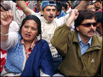 مظاہرین نیپال کے بادشاہ شاہد گیانندرا سے مطالبہ کررہے ہیں کہ وہ اقتدار سے دستبردار ہوجائیں جبکہ حکومت کا کہنا ہے کہ ماؤ نواز باغی مظاہرین کی صفوں میں شامل ہوگئے ہیں اور تشدد بھڑکانے کی کوشش کررہے ہیں۔ دریں اثناء حکومت نے اپوزیشن کے ان دو سینئرہنماؤں کو رہا کر دیا ہے جنہیں تین ماہ قبل گرفتار کیا گیا تھا۔ بدھ کو کیورٹی فورسز نے پوکھرا کے قصبے میں کرفیو کی خلاف ورزی کرتے ہوئے شاہ کے خلاف احتجاج میں حصہ لینے والے ڈھائی سو کے قریب اساتذہ کو گرفتار کر لیا ہے۔ |
