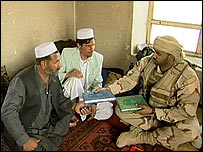 انہیں جس گاؤں میں جانا تھا، بالکل آخری لمحوں میں وہ انتہائی خطرناک دکھائی دینے لگا اور یہ بھی ظاہر تھا کہ امریکی انہیں فضائی تحفظ فراہم کرنے کی ضمانت بھی نہیں دے سکتے تھے۔ اس لیے انہوں نے اس گاؤں جانے کا ارادہ ترک کر دیا اور ایک بار پھر اسی گاؤں چلے گئے جس کا دورہ وہ اس سے پہلے بھی کر چکے تھے۔ انہوں نے گاؤں کے لوگوں کو تحفے دیے اور ان سے پوچھا کہ وہ ان کے لیے کیا کر سکتے ہیں۔ ظاہر ہے مسلمان ہونے کے ناطے ان کا بڑی گرمجوشی سے خیر مقدم کیا گیا۔ ایک نوجوان افغان نے ان کے بارے میں بات کرتے ہوئے کہا کہ ’پہلے تو میں سمجھا کے امریکی ہیں، اس لیے میں نے اپنا راستہ لینے کی کوشش کی لیکن جب انہوں نے کہا کہ وہ مسلمان ہیں تو میں رک گیا کیونکہ مسلمان ہونے کی حیثیت سے تو یہ ہمارے بھائی ہیں‘۔ ایک اور افغان حاجی فضل اللہ کا کہنا تھا کہ ’عرب فوجی ہمارے ملک اور ہمارے گاؤں میں آئے ہیں تو یہ ہمارے لیے خوشی کی بات ہے‘۔ عرب مسلمان فوجی گزشتہ پانچ سال سے افغانستان میں امریکہ اور اس کے اتحادیوں کے ساتھ کام کر رہے ہیں لیکن اب بھی یہ بات شاید بہت سے لوگوں کے لیے حیرت انگیز ہو گی۔ کیا ان فوجیوں کو احساس ہے کہ عرب ممالک میں لوگوں کو جب اس کا علم ہو گا تو ان کا ردِ عمل کیا ہو گا؟ یہی سوال جب میجر غنیم سے پوچھا گیا تو ان کا کہنا تھا ’ہمارے پاس اس کا جواب ہے، اور وہ جواب اماارت کے لوگوں کے لیے بھی ہے، خلیج کے لوگوں کے لیے بھی اور اگر افغانستان میں پوچھا جائے تو افغانستان کے لیے بھی‘۔