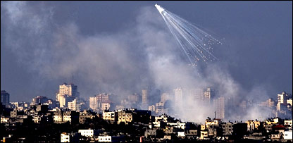 غزہ میں لڑائی کا تیسرا ہفتہ شروع ہوتے ہی اسرائیل نے اپنی بمباری جاری رکھی ہے۔ جمعہ کی شب اسرائیل نے چار فضائی حملے کیے جبکہ حماس کے شدت پسندوں نے دو میزائلوں سے اسرائیلی شہروں کو نشانہ بنایا۔ اسرائیل اور حماس دونوں نے ہی اقوام متحدہ کی سلامتی کونسل کی جانب سے فائربندی کی اپیل مسترد کردی ہے۔ تاہم سینیئر فلسطینی اہلکار مصر میں ہیں جہاں کو لڑائی کے خاتمے کے بارے میں مذاکرات کر رہے ہیں۔ غزہ میں طبی اہلکاروں کا کہنا ہے کہ دو ہفتے کی بمباری میں لگ بھگ آٹھ سو فلسطینی ہلاک ہوئے ہیں جبکہ اسرائیل کا کہنا ہے کہ تیرہ اسرائیلی بھی ہلاک ہوئے ہیں۔