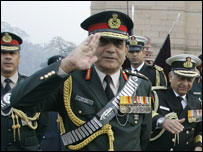 بھارت کی فوج کے سربراہ جنرل دیپک کپور نے کہا ہے کہ پاکستان نے سرحد کے ساتھ اپنی فوج میں اضافہ کر دیا ہے۔ بھارتی فوجی سربراہ کا یہ بیان ایک ایسے مرحلے پر دیا گیا ہے جب دنوں ملکوں کے درمیان تعلقات ممبئی حملوں کے بعد انتہائی کشیدہ ہیں۔ جنرل دیپک کپور نے یہ وضحات نہیں کہ پاکستان نے سرحد کی فوج کے ساتھ کتنا اضافہ کیا اور یہ اضافہ کب کیا گیا۔ جنرل دپیک کپور نے کہا کہ بھارت کی فوج نے پاکستان کی طرف سے ساتھ فوج میں اضافے کو پیش نظر رکھتے ہوئے دفاعی منصوبہ بندی کر لی ہے۔ تاہم انہوں نے کہا کہ اس وجہ سے خطے میں جنگ کا جنون پیدا کرنے کی ضرورت نہیں ہے۔ انہوں نے مزید کہا کہ جنگ بھارت کے لیے آخری چارہ ہو گا۔ بھارت کے آرمی چیف کے اس بیان پر پاکستان سے کوئی رد عمل سامنے نہیں آیا۔ | اسی بارے میں ’کارروائی نہیں تو تمام رشتے منقطع‘14 January, 2009 | انڈیا ممبئی کے ثبوت: پاکستان کو کیا دیاگیا؟ 07 January, 2009 | انڈیا حملوں میں’حکومتی عناصر کا ہاتھ‘04 January, 2009 | انڈیا پاکستان کو ثبوت سونپ دیئے05 January, 2009 | انڈیا | ||||||||||||||||||||||||||||||||||||||||