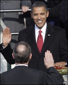 امریکی صدر باراک اوباما نے بدھ کو ایک مرتبہ پھر اپنے عہدے کا حلف لیا ہے کیونکہ منگل کو پہلے حلف کی روایتی عبارت پڑھنے کے دوران میں حلف کے الفاظ کی ترتیب آگے پیچھے ہوگئی تھی۔ امریکی سپریم کورٹ کے چیف جسٹس جان رابرٹس نے صدر اوباما سے دوسری مرتبہ جو حلف لیا اس کی سادہ سی تقریب وائٹ ہاؤس میں بدھ کو ہوئی۔ ایک سرکاری اہلکار نے بتایا ہے کہ دوسری دفعہ حلف لینے کا فیصلہ محض ’بہت زیادہ احتیاط‘ کے پہلو کو مدِ نظر رکھتے ہوئے کیا گیا۔ دوسرے حلف کے موقع پر صدر اوباما نے از راہِ تفنن یہ کہا: ’ہم نے دوبارہ حلف کا فیصلہ اس لیے کیا کیونکہ اس کام میں بڑا لطف آتا ہے اور اب ہم یہ حلف آہستہ آہستہ اٹھائیں گے۔‘  | اس کام میں بڑا لطف آتا ہے  ’ہم نے دوبارہ حلف کا فیصلہ اس لیے کیا ہے کیونکہ اس کام میں بڑا لطف آتا ہے اور اب کی بار ہم یہ حلف آہستہ آہستہ اٹھائیں گے۔‘  باراک اوباما |