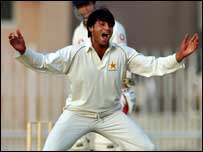 ایشلے جائلز اور لیئم پلنکٹ کی عمدہ بولنگ کے نتیجے میں انگلینڈ کی ٹیم اپنے دورۂ پاکستان کے پہلے میچ میں جیت کے قریب آگئی ہے۔ پنڈی کرکٹ اسٹیڈیم میں سہ روزہ میچ کے آخری دن چائے کے وقفے پر پی سی بی پیٹرنز الیون کے8 بیٹسمین جیت کے لئے درکار158 رنز کے تعاقب میں88 رنز پرآؤٹ ہوچکے تھے۔ جائلز اور پلنکٹ چار چار وکٹوں پر ہاتھ صاف کرچکے ہیں۔ میچ کے تیسرے اور آخری دن انگلینڈ نے39 رنز6 کھلاڑی آؤٹ پر دوسری اننگز شروع کی اور پوری ٹیم112 رنز بناکر آؤٹ ہوگئی۔ نوین نمبر پر بیٹنگ کے لئے آنے والے مارکس ٹریسکوتھک38 رنز بناکر ناٹ آؤٹ رہے۔ پال کالنگ ووڈ نے34 رنز بنائے۔ پی سی بی پیٹرنز الیون کی جانب سے یاسرعرفات نے31 رنز کے عوض پانچ وکٹیں حاصل کیں۔ پہلی اننگز میں انہوں نے چار کھلاڑی آؤٹ کئے تھے۔ محمد ارشاد کے حصے میں تین وکٹیں آئیں۔ نجف شاہ نے دو کھلاڑیوں کو آؤٹ کیا۔ میزبان ٹیم کو جیتنے کا سنہری موقع ہاتھ آیا تھا لیکن وقفے وقفے سے گرنے والی وکٹیں اسے جیت کے بجائے شکست کے قریب کرتی چلی گئیں۔ اشعر زیدی اور یاسرحمید کے درمیان پہلی وکٹ کی شراکت میں پچاس رنز بنے ۔ اشعرزیدی26 رنز بناکر پلنکٹ کی گیند پر اینڈرسن کے ہاتھوں کیچ ہوئے۔ فیصل اقبال2 رنز بناکر پلنکٹ کی گیند پر وکٹ کیپر میٹ پرائر کے ہاتھوں کیچ ہوئے۔ شہزاد ملک کو3 رنز پر جائلز نے بولڈ کیا جبکہ کپتان مصباح الحق کی14 رنز کی اننگز کا خاتمہ ٹریسکوتھک نے پلنکٹ کی گیند پر کیچ کرکے کیا۔ | اسی بارے میں ٹریسکوتھک کی سنچری نے بچا لیا31 October, 2005 | کھیل انگلینڈ کرکٹ ٹیم پاکستان پہنچ گئی25 October, 2005 | کھیل انگلینڈ کی ٹیم دورہ پاکستان پر روانہ25 October, 2005 | کھیل پاک انگلینڈ سیریز: رہائشی دشواریاں05 October, 2005 | کھیل شبیر:انگلینڈ کےخلاف پرعزم01 October, 2005 | کھیل انگلینڈ اور پاکستان: ناخوشگوار واقعات 02 October, 2005 | کھیل انگلینڈ پاکستان: 68۔69 کرکٹ سیریز 03 October, 2005 | کھیل | ||||||||||||||||||||||||||||||||||||||||