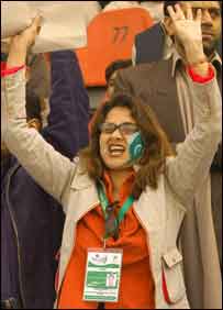 قذافی سٹیڈیم میں پاک انگلینڈ سیریز کے دوسرے ایک روزہ میچ میں کڑی سکیورٹی انتظامات کو ایک خاتون نے ناکام بنا دیا۔ یہ خاتون شائق ایک مرد کا کارڈ گلے میں لٹکائے میچ سے لطف اندوز ہوتی رہیں اور سکیورٹی و انتظامیہ کے کسی اہلکار نے اس کا نوٹس نہیں لیا۔ ان خاتون نے دو ہزار روپے مالیت کی ٹکٹ والے عمران خان انکلوثر میں بیٹھ کر میچ دیکھا اور میچ کے دوران کئی بار قذافی سٹیڈیم کے مین گیٹ سے آتی جاتی بھی رہیں۔ مین گیٹ سے اندر آنے کے بعد کوئی بھی شخص کھلاڑیوں اور پی سی بی آفیشلز اور غیر ملکی مہمانوں کو قریب سے دیکھ سکتا ہے۔ اس نا معلوم خاتون نے واپڈا کے کےایک سب سٹیشن اٹینڈنٹ جہانگیر اکبر کا کارڈ پہن رکھا تھا۔ کارڈ پر تصویر اور تصویر والے کا نام کافی واضح ہوتا ہے۔ سیریز سے پہلے انگلینڈ کی کرکٹ ٹیم کے لیے سکیورٹی کے خصوصی انتظامات کرنے کے اعلانات کیے گئے تھے۔ وہ پولیس والوں کی نظروں سے تو بچی رہیں لیکن ایک فوٹوگرافر کے کیمرے نے ان کے تصویر محفوظ کر لی | اسی بارے میں ’کرکٹ میچ اب فکس نہیں ہوتے‘12 December, 2005 | کھیل ٹیسٹ کرکٹ کی واپسی30 November, 2005 | کھیل خواتین کرکٹرز جگہ بنا پائیں گی؟ 26 November, 2005 | کھیل کرکٹ چھوڑنے لگا تھا: انضمام25 November, 2005 | کھیل ٹریسکوتھک ٹیم کے ساتھ رہیں گے18 November, 2005 | کھیل کرکٹ بھی شرما گئی18 November, 2005 | کھیل پاکستان کا کرکٹ کے ساتھ لگاؤ15 November, 2005 | کھیل کرکٹ: کون کون پاکستان آرہا ہے؟08 November, 2005 | کھیل | ||||||||||||||||||||||||||||||||||||||||