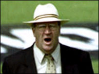 یاد رہے کہ کینڈی میں ڈیرل ہیئر کے امپائر مقرر کئے جانے کی خبر سری لنکا میڈیا نےشہ سرخیوں کے ساتھ شائع کی تھی۔ عام خیال یہ ہے کہ سری لنکا میں شدید ردعمل کے پیشِ نظر ڈیرل ہیئر نے ہی سری لنکا نہ آنے کا فیصلہ کیا ہے کیونکہ یہ بات کسی سے ڈھکی چھپی نہیں کہ مرلی کے بولنگ ایکشن پر اعتراص کرنے اور اپنی کتاب میں اس واقعے کا تذکرہ کرنے کے بعد ہیئر کبھی بھی سری لنکن ٹیم اور شائقین کے لیئے پسندیدہ نہیں رہے۔ یہ بھی ممکن ہے کہ سری لنکن کرکٹ بورڈ نے ڈیرل ہیئر کی تعیناتی پر اعتراض کیا ہو تاہم سری لنکن کرکٹ بورڈ کے ڈائریکٹر کرکٹ آپریشنز بنڈولا ورنا پورا نے اس کی تردید کی ہے۔ دلچسپ بات یہ ہے کہ دلیپ مینڈس اس امر سے انکار کر رہے ہیں کہ ہیئر کینڈی ٹیسٹ کے امپائر تھے حالانکہ سری لنکن کرکٹ بورڈ کی جاری کردہ سیریز کی تفصیلات میں ہیئر کا نام امپائرز پینل میں موجود ہے اور اطلاعات کے مطابق سری لنکن کرکٹ بورڈ نے ڈیرل ہیئر کے لیئے سکیورٹی کے خصوصی انتظامات بھی کر رکھے تھے۔ | اسی بارے میں جےسوریا، ٹیسٹ کرکٹ کو الوداع31 March, 2006 | کھیل وولمر سیریز میں فتح کے خواہشمند01 April, 2006 | کھیل شعیب ملک کی سنچری، میچ ڈرا30 March, 2006 | کھیل امپائرز کی تعداد میں اضافہ01 December, 2005 | کھیل | ||||||||||||||||||||||||||||||||||||||||