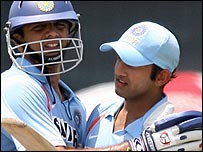 انڈین ٹیم کے بلے باز سہواگ سید رسل کی گیند پر جاوید عمر کے ہاتھوں کیچ آؤٹ ہوئے۔ وہ صرف اکیس رن ہی بنا سکے۔ دھونی نے 36 رنز بنائے۔ ٹیم کے کپتان ڈراوڈ بیالیس رنز بنا کر ناٹ آؤٹ رہے۔ یوراج چوبیس رنز بنا کر محمد رفیق کی گیند پر انہی کے ہاتھوں کیچ آؤٹ ہوئے۔ ظہیر نو رن کے ساتھ ناٹ آؤٹ رہے۔ بنگلہ دیش کے بالرز میں محمد رفیق نے 59 رنز کے عوض تین جبکہ سید رسل اور عبدالرزاق نے دو دو وکٹیں حاصل کیں۔ مشرف ایک وکٹ ہی لے سکے۔ بنگلہ دیش کی جانب سے کوئی کھلاڑی بھی جم کر نہ کھیل سکا۔ مشرف مرتضی کے دھواں دھار چھکے بھی ٹیم کو سہارا نہ دے سکے۔ کپتان حبیب البشر نے 43 رنز اور آفتاب احمد نے چالیس رنز بنائے۔ مشفیق الرحمان پینتیس رنز بنا کر یوراج سنگھ کی گیند پر سہواگ کے ہاتھوں کیچ ہوئے۔ انڈیا کے بالرز میں پیوش چاولہ نے 38 رنز کے عوض تین کھلاڑیوں کو آؤٹ کیا۔ یوراج اور ظہیر نے دو دو جبکہ پور نے ایک وکٹ حاصل کی۔ سنیچر کا میچ جیتنے کے بعد انڈین ٹیم کے کپتان راہول ڈراوڈ کا کہنا تھا:’ہمیں اس وقت کسی بڑی اننگز کی توقع تھی جو گوتھم گمھبیر کی سینچری سے پوری ہو گئی‘۔ ان کا کہنا تھا کہ انہیں امید ہے کہ وہ چٹاگانگ میں ہونے والا تیسرا ایک روزہ میچ بھی جیت جائیں گے۔اس میچ میں ان کھلاڑیوں کو موقع دیا جائے گا جنہیں ابھی تک کھیلنے کا موقع نہیں ملا ہے۔