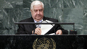 شامی وزیرِ خارجہ نے اپنی تقریر میں کہا کہ امریکہ اور فرانس نے دیگر علاقائی ممالک کے ساتھ مل کر باغیوں کو رقم اور ہتھیار فراہم کر کے قیامِ امن کی کوششوں کو نقصان پہنچایا ہے۔