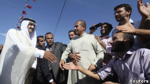 قطر کے امیر جب مصر کی سرحد پر رفا کے راستے غزا میں داخل ہوئے تو ان کا ایک قومی ہیرو کے طور استقبال کیا گیا۔