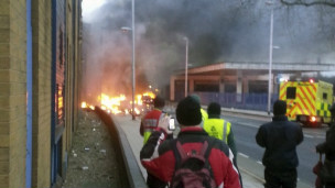 لندن برج فائر بریگیڈ کا کہنا ہے کہ ہیلی کاپٹر کی دم عمارت کی چھت پر گری جب کہ باقی ملبہ زمین پر گرا اور اس کی ذر میں دو گاڑیاں بھی آئیں ہیں۔